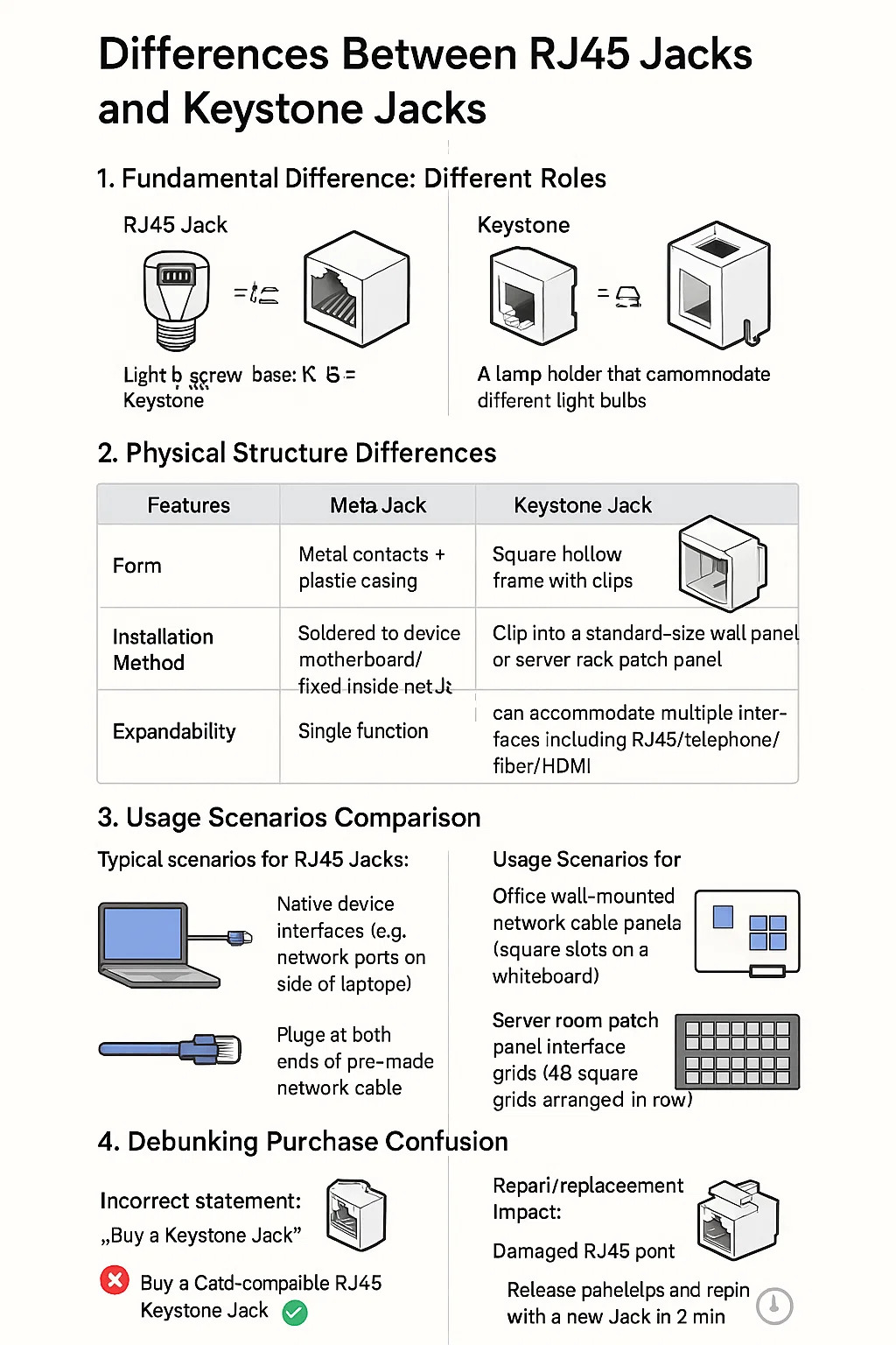 Diferențele dintre mufele RJ45 și mufele Keystone